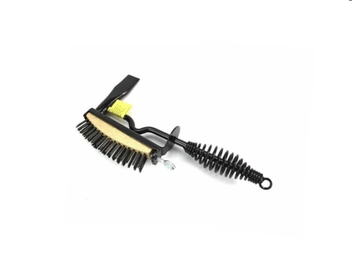 Piqueta para la remocion de escoria y proyecciones con cepillo de cerda de alambre incorporado para barrer la escoria removida con la piqueta