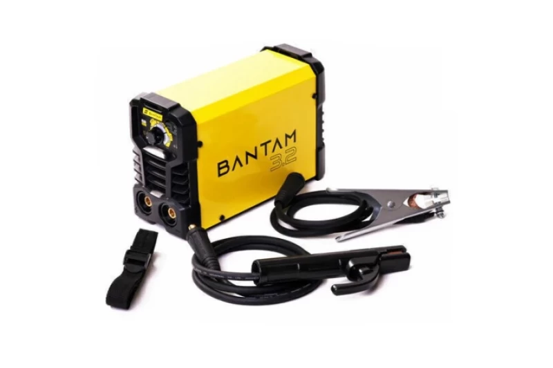 La Bantam 3,2 es ideal para electrodos de hasta 3,25 mm Lista para usar. incluye pinza porta electrodos, pinza de masa, manual y correa para hombro