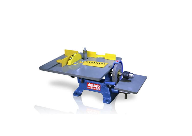 Máquina de 5 funciones: tupí vertical, garlopa, sierra circular, piedra esmeril y mandril.
