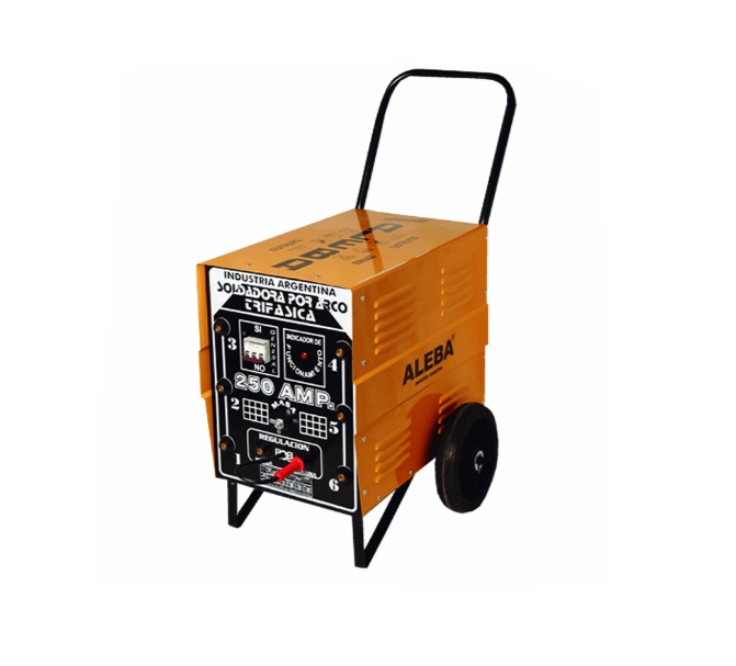 Alimentación 50 ciclos: 220-380v. Monofásica / bifásica. Potencia absorbida: 9 kw. Tensión en vacío: 55v. Regulación de amperes: 50-250. Electrodos utiliz. en mm: 2 a 5. Autonomía de trabajo en mm: 100% – 2 / 60% – 3,25 / 35% – 5. Número de regulación: 12. Ventilación: turbo. Gabinete: con ruedas. Peso en kg: 68.
