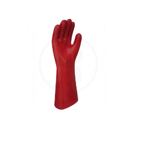 El guante de PVC es un producto de uso industrial que brinda seguridad a los miembros superiores del trabajador. Las áreas protegidas dependerán del largo del guante a utilizar que van desde el modelo corto para protección de manos, hasta los guantes de 70cm de largo que protegen la totalidad del brazo, utilizado para profundidad en la inmersión. El producto es reforzado por medio del impregnado con agentes de alta dureza y abrasión que le confieren una superficie rugosa que facilita el agarre y la manipulación de productos. Posee una importante capacidad mecánica fundamentalmente en lo referente a resistencia a la abrasión y al desgarro. Si bien no es un producto diseñado para el uso como anti corte o anti perforación, su soporte textil y el espesor del pvc aportan gran resistencia en este sentido. Protege la piel de los riesgos químicos de los compuestos utilizados en el lugar de trabajo, fundamentalmente en uso de Hidrocarburos, Ácidos y Bases. La experiencia industrial demuestra su eficacia en contacto con Solvente alifáticos, hidrocarburos, cal, detergentes, fosfatos, glicerinas, grasas minerales y animales, nitratos, nafta, pinturas, barnices, silicatos, tintas y alcohol, entre otros. Se destaca la elevada desteridad del producto, facilitando la maniobrabilidad y brindando confort y flexibilidad en las operaciones. Es un producto de vida prolongada, no sufre degradaciones en condiciones normales de uso. El pvc confiere un agarre óptimo para la manipulación de elementos. Aporta resistencia a los microorganismos en contacto con la transpiración del cuerpo. Confiere una importante resistencia térmica ideal para inmersión en medios exotérmicos. No se recomienda su uso en temperaturas superiores a 80°C ya que puede degradarse.
