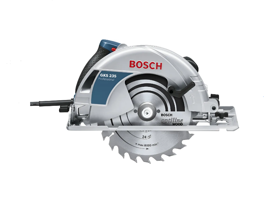 La Sierra circular GKS 235 de Bosch tiene una potencia de 1700W, es la sierra circular con mejor rendimiento y con el motor más potente de la categoría. Tiene una excelente capacidad y versatilidad, ya que trae dos puntos de visión y sistema optimizado para eliminar virutas para mayor precisión en los cortes. Su base inclinada permite cortes en hasta 48° y la placa base en acero con doble fijación garantiza más estabilidad durante el corte. Con la Sierra circular GKS 235 de Bosch podrás realizar cortes en madera y plástico. Esta versión incluye 1 disco de sierra de 24 dientes, 1 guía paralela y 1 llave allen. Es recomendada para uso industrial y tiene el sello Heavy Duty que cuenta con 2 años de garantía de la marca Bosch.