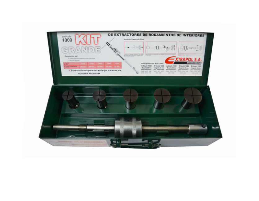 Contenido: 1 artículo 1004 Percutor a golpe A, 1 artículo 1030 Boquilla de 30mm, 1 artículo 1035 Boquilla de 35mm, 1 artículo 1035 Boquilla de 35mm, 1 artículo 1040 Boquilla de 40mm, 1 artículo 1045 Boquilla de 45mm y 1 artículo 1050 Boquilla de 50mm.