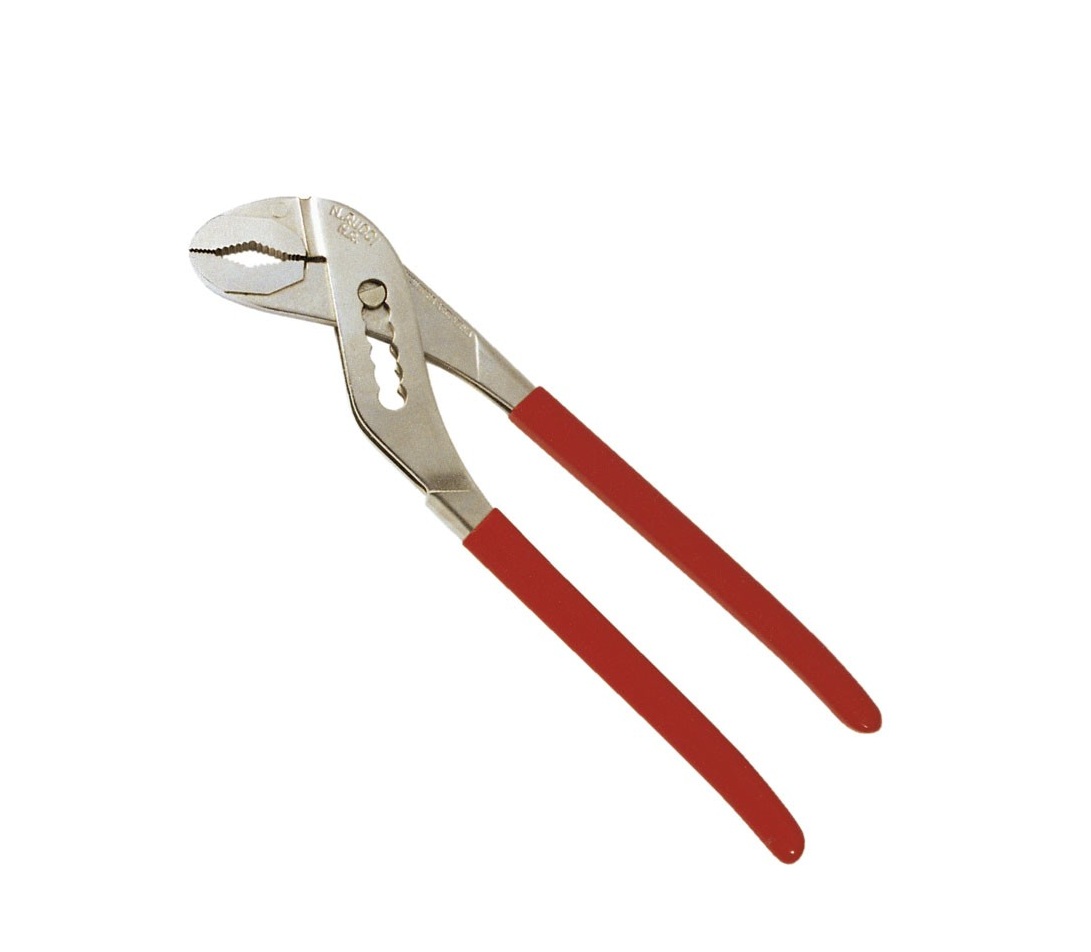 Construida en acero tratado térmicamente.Doble cremallera.Mordazas intercambiables de Cr-Ni cementadas.Perno pívot de Cr-Ni.Mango de PVC.
