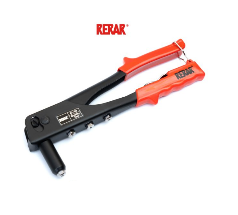 ESCRIPCIÓN: Remachadora manual con mango ergonómico y antideslizante. Sus boquillas (o picos) intercambiables permiten al usuario adaptar la aplicación de los remaches de acuerdo al proyecto que este concretando.