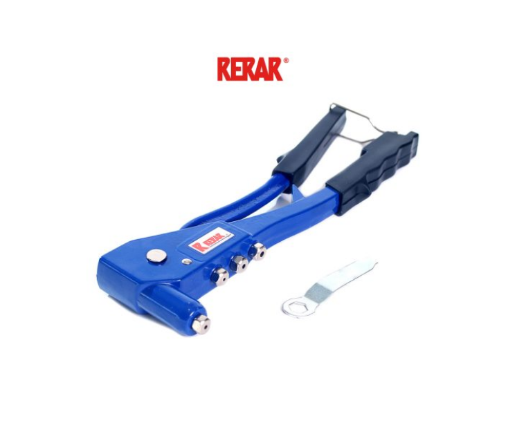 DESCRIPCIÓN: Remachadora manual reforzada con mango ergonómico y antideslizante. Sus boquillas (o picos) intercambiables permiten al usuario adaptar la aplicación de los remaches de acuerdo al proyecto que este concretando.