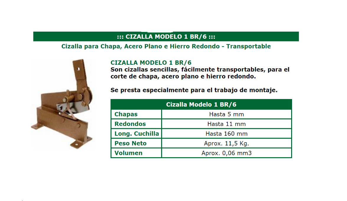 CIZALLA PARA CHAPA, ACERO PLANO Y HIERRO REDONDO TREBOL KLEE (1BR/6)
