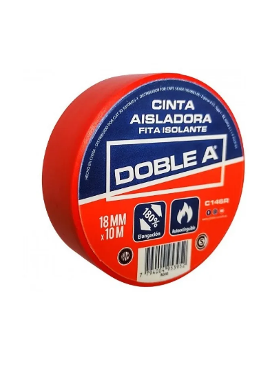 CINTA AISLADORA ROJA 18MM X 10MTS DOBLE A (C146)