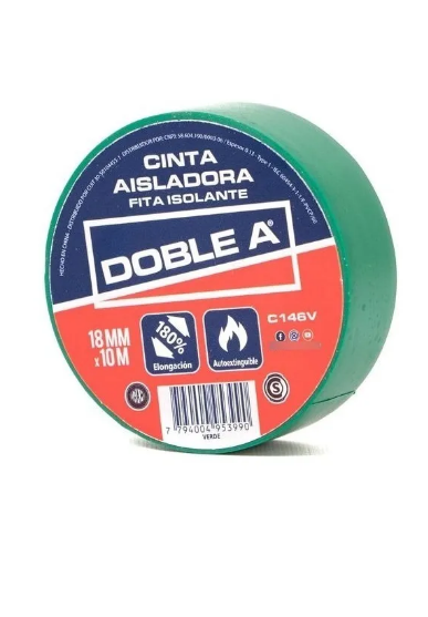 CINTA AISLADORA VERDE 18MM X 10MTS DOBLE A (C146)