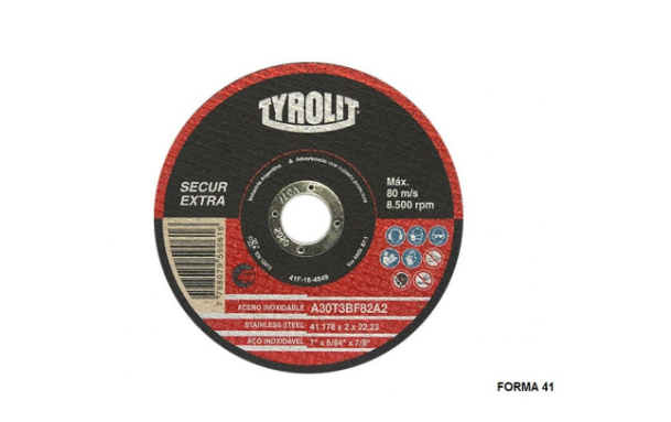 Los Discos Abrasivos TYROLIT SECUR EXTRA Inox son de alta capacidad de corte y larga vida útil, especialmente recomendados para aceros inoxidables.
